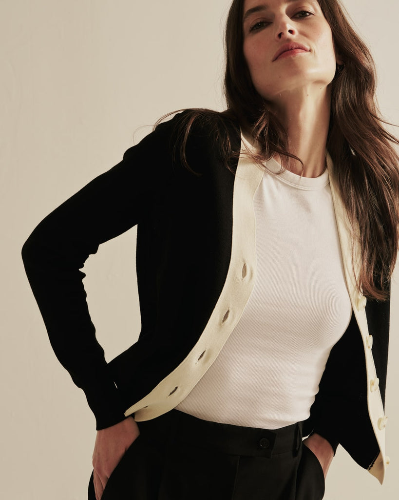 Meet the Perry Tipped Cardigan — a refined take on an everyday classic. Crafted from our lightest-weight Egyptian cotton and spun in Italy, this softly structured knit delivers featherlight comfort with elevated ease. Whether layered over a slip dress or worn solo, the Perry brings effortless polish to your year-round wardrobe.