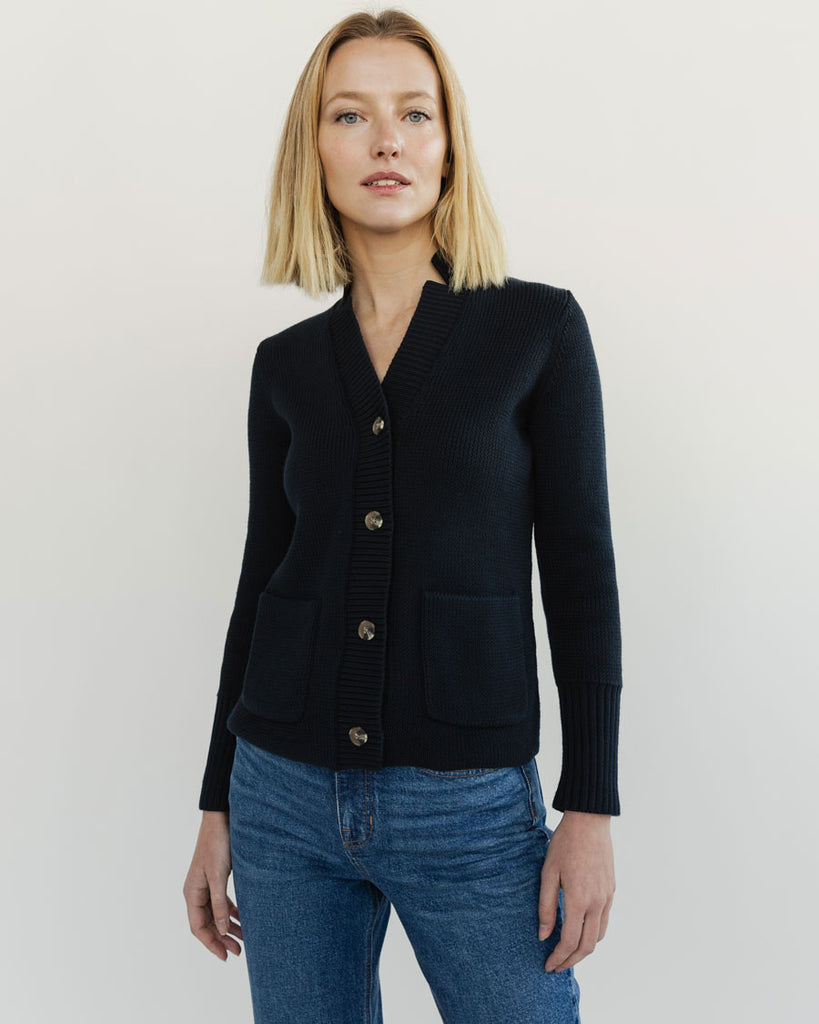 The Sutton Cardigan is your go-to for effortless polish and everyday comfort. With a softly structured silhouette and thoughtful detailing, it layers beautifully over a tee or stands strong on its own.